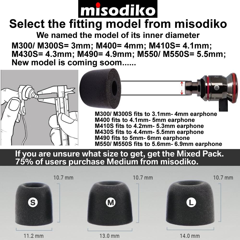 misodiko Memory Foam Earphone Isolation Sports Earbuds Tips, Suitable for Jaybird X4, X3, X2, BlueBuds X, Run, Freedom F5, Replacement Secure Fit Eartips - M550 (Small, 3-pairs)