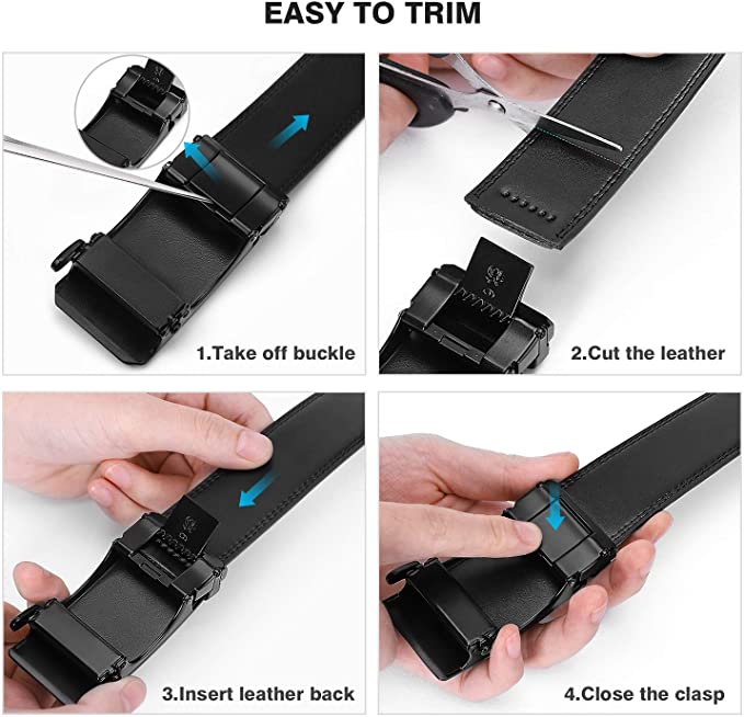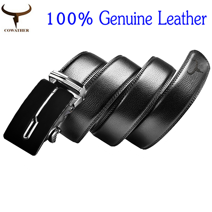Men 3.5cm Dress Belts, COWATHER Ratchet Genuine Leather Casual Belts Slide Casual Classic Leather Belt for Men with Automatic Lock Buckle. Size Customized