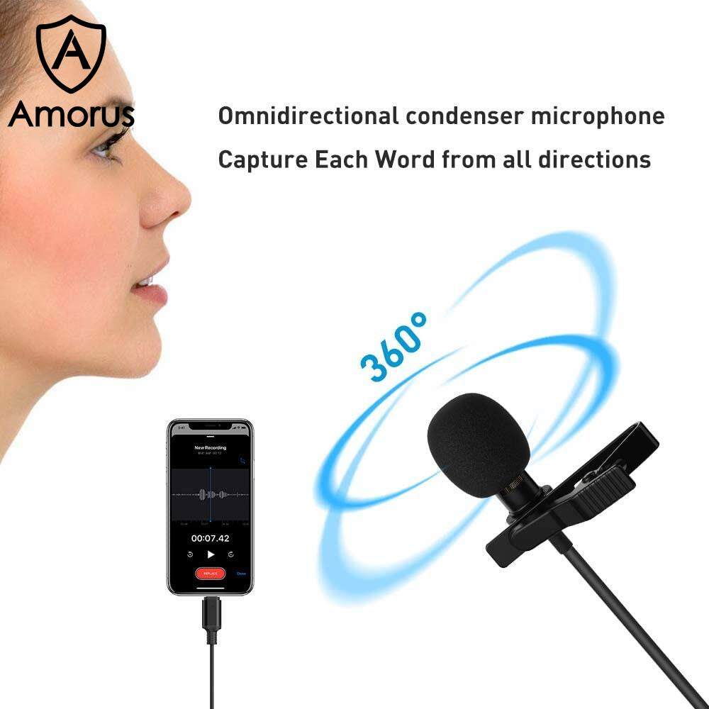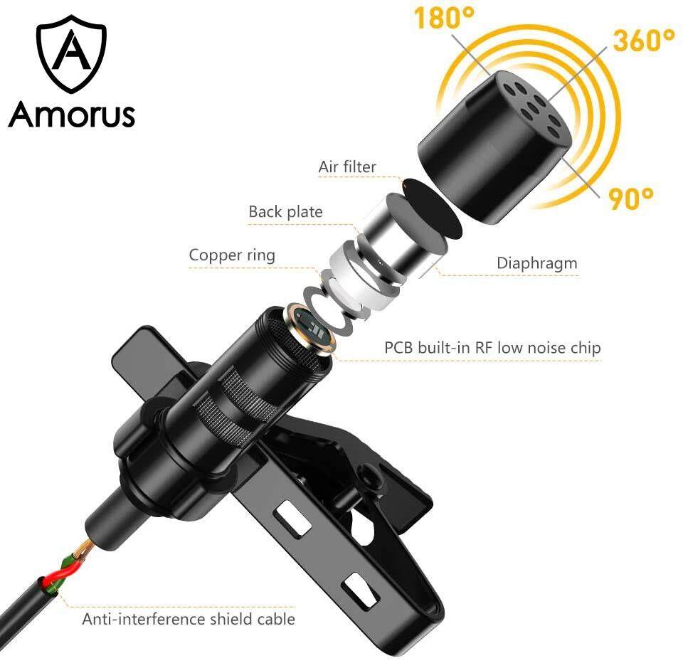 Amorus Mini Karaoke Record Lavalier Lapel Microphone 2m for iPhone iPad etc.