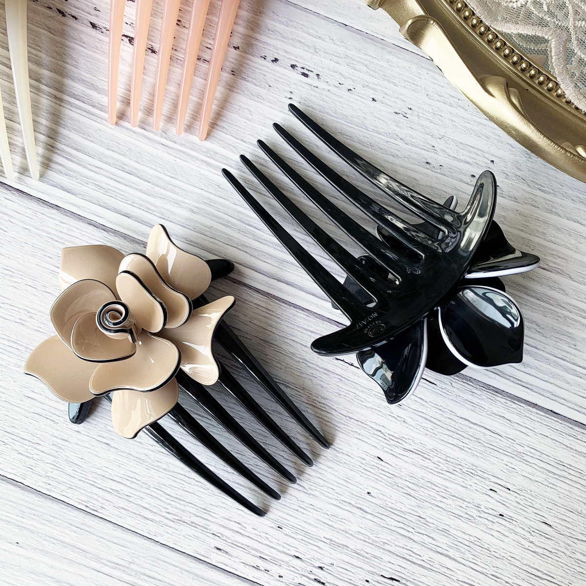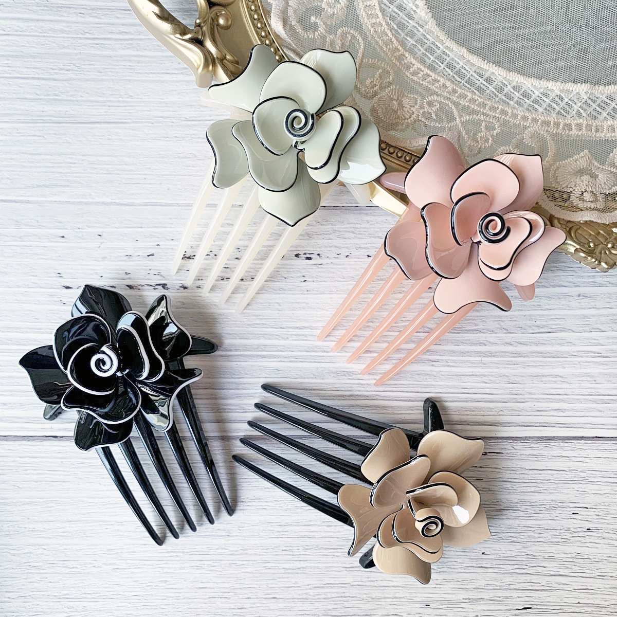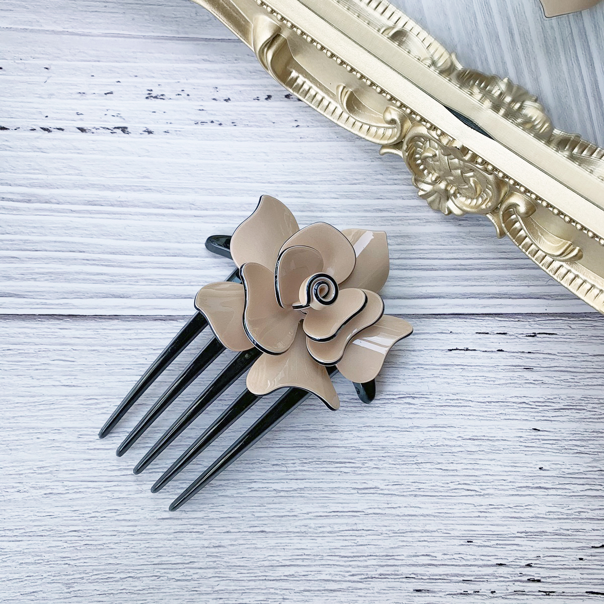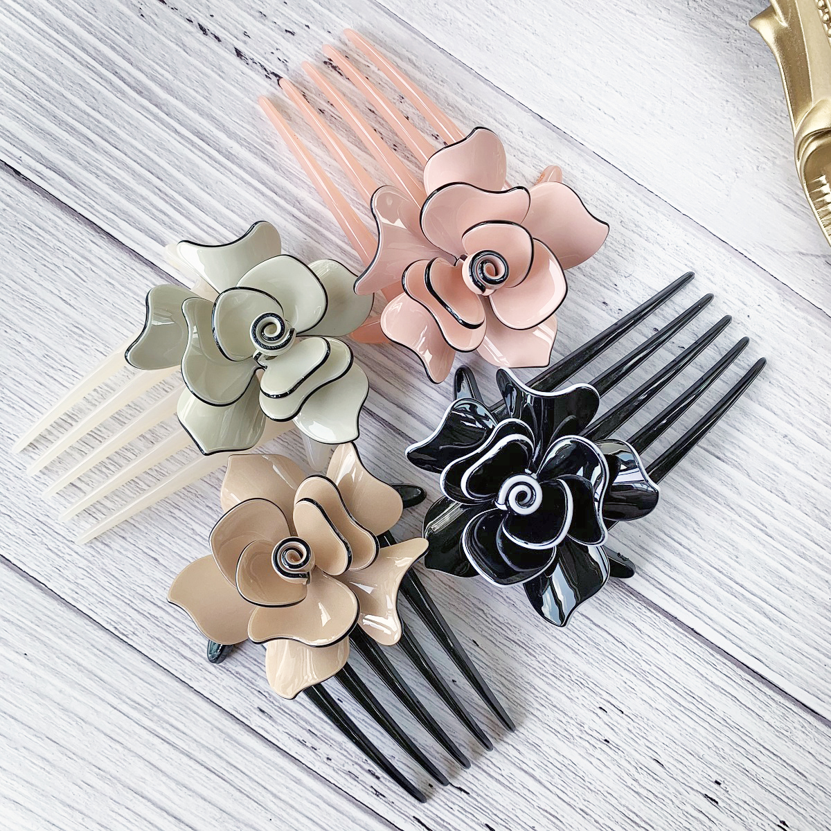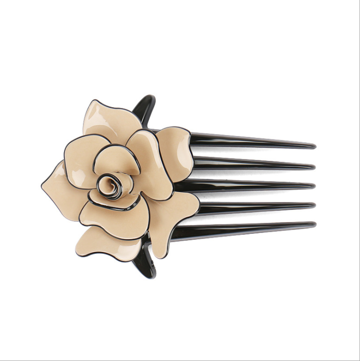 [SG] 11cm Camellia French Pleat Hair Style Hair Comb, 5 Teeth Elegant Stewardess Hairstyle Hair Comb Clip