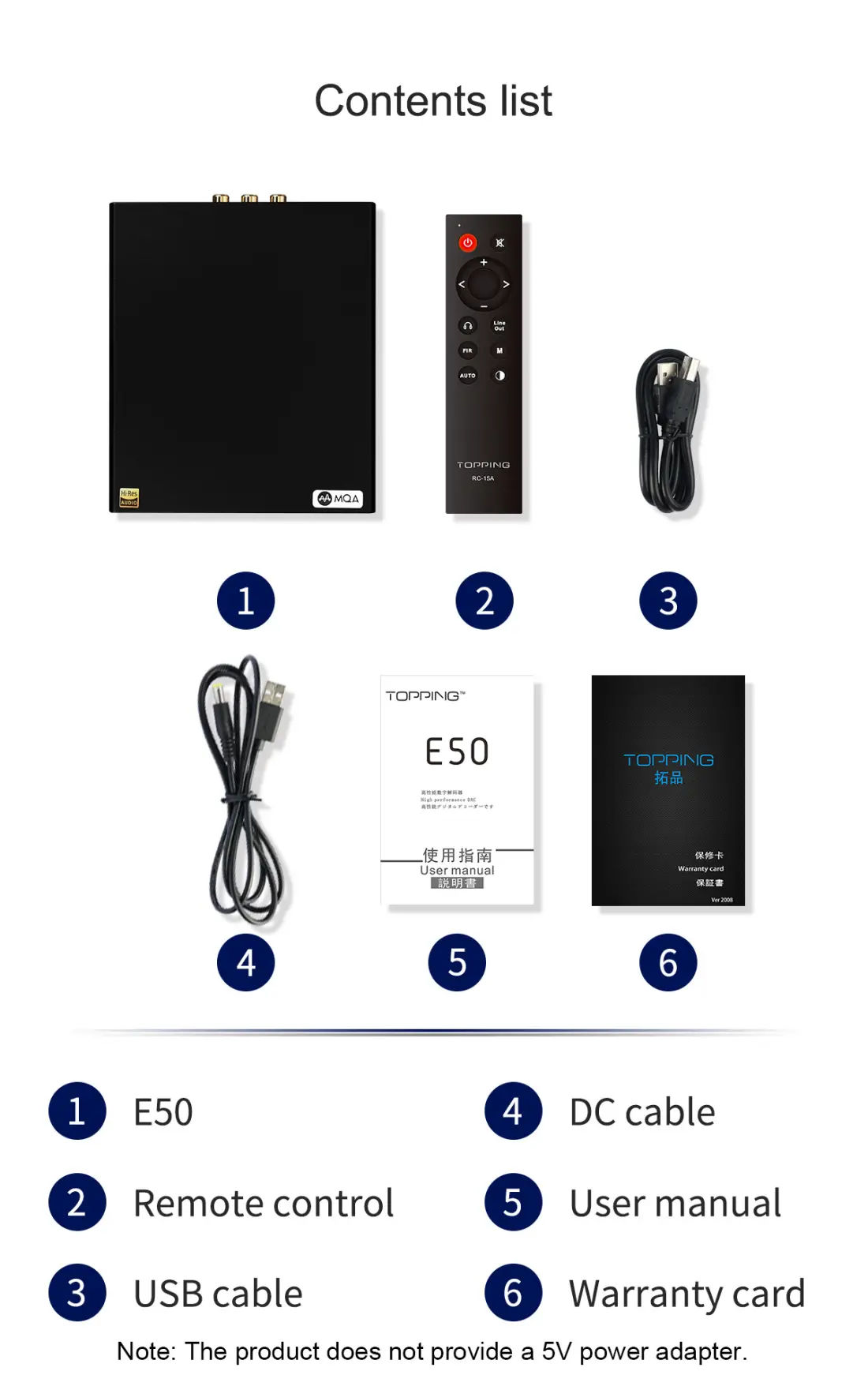 Note: The product does not provide a 5V power adapter.