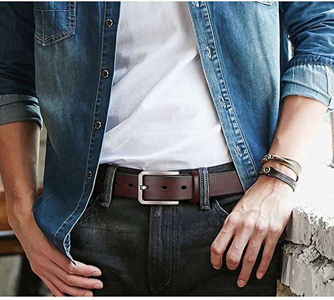 COWATHER Men's Casual Prong Belts with Genuine Cowhide Leather 1.5" wide Belt for Men Everyday Classic Sport Dress Belts
