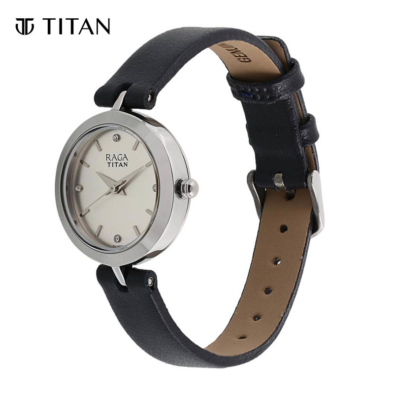 Titan Raga White Dial Black Leather Strap Women's Watch 2540SL01