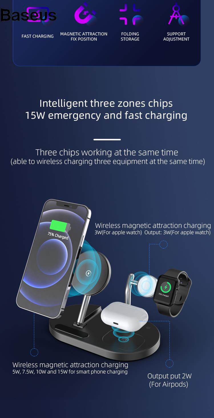 Baseus wireless charger A23 3 in 1 Magnetic Wireless Charger for iPhone Portable Folding Wireless Charging Stand with Small Night Lamp for iPhone 12 13 Series/iWatch/AirPods?24hrs ship out?