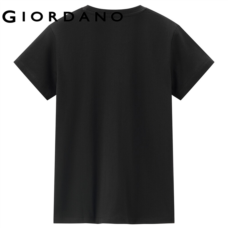 GIORDANO Women T-Shirts Short Sleeve Comfy 100% Cotton Casual T-Shirts Letter Print Ribbed Crewneck Simple T-Shirts 13392202