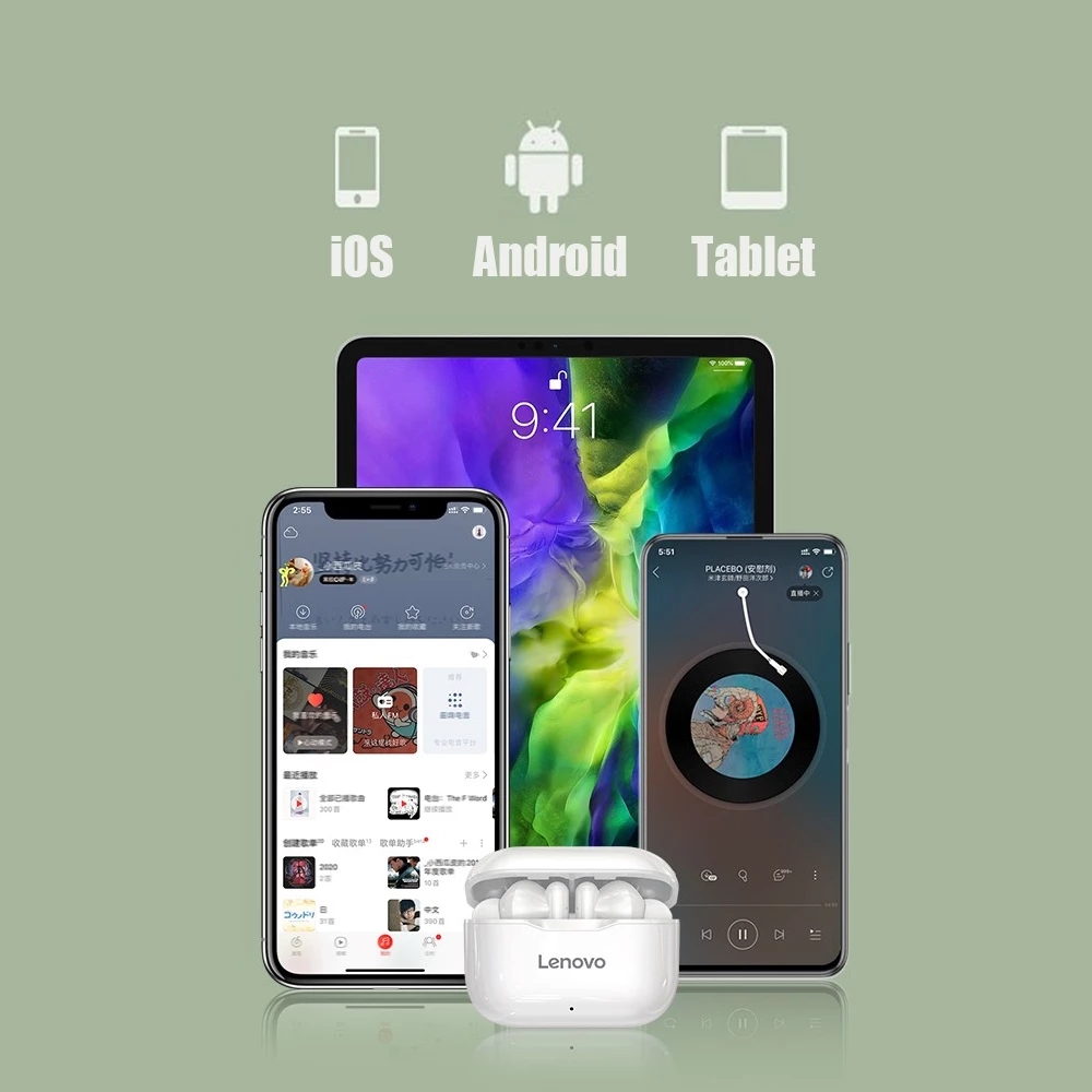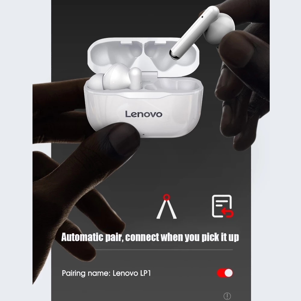 Original Lenovo LP1 TWS Earbuds Earphones Bluetooth Wireless Headphones Touch Control Sport Headset Earphones with Microphones
