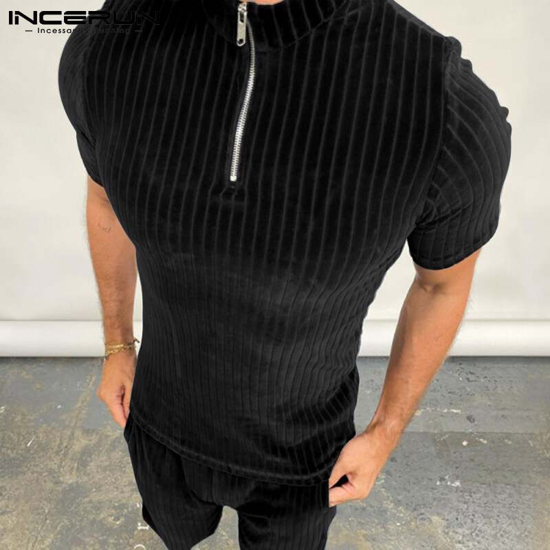 RisingHope Korea INCERUN 2PCS Mens Short Sleeve T Shirts Short Sleerwear Sets Sports Tracksuit Lounge Suit