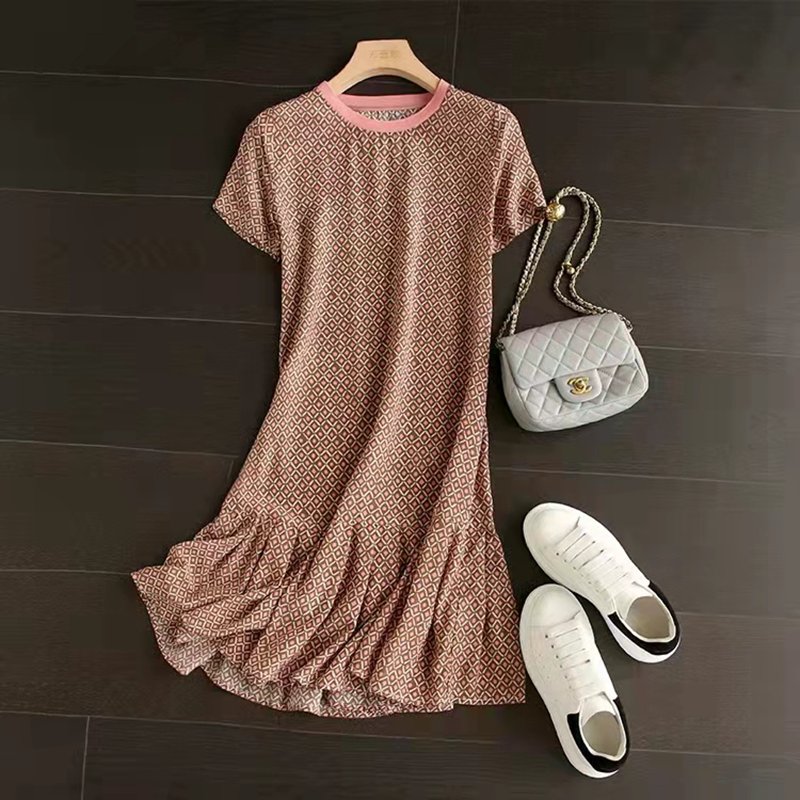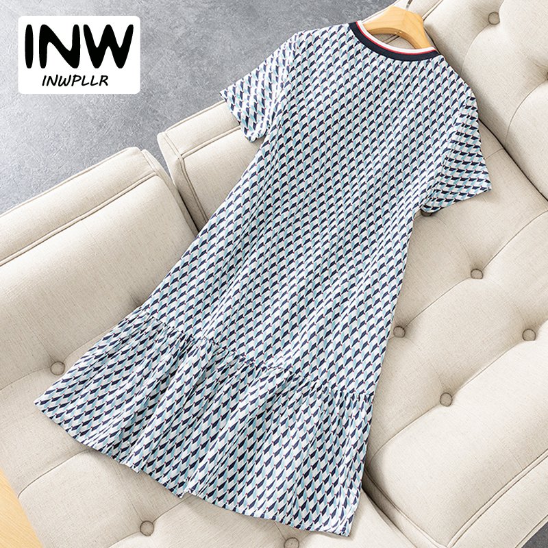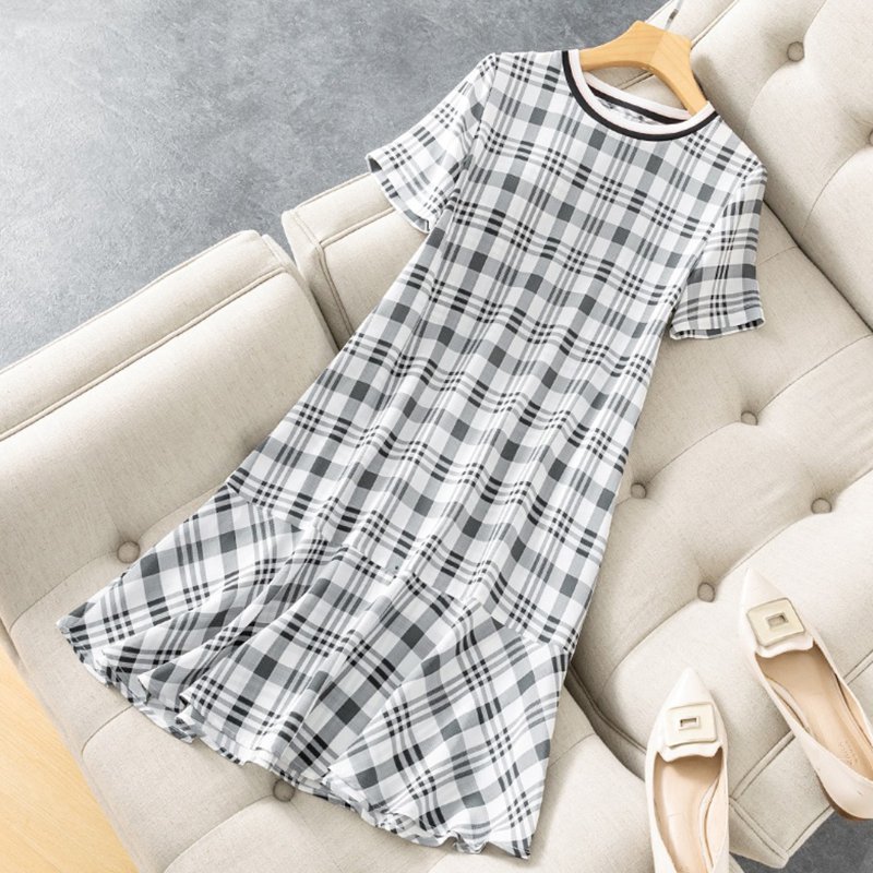 INWPLLR New Summer Dresses Women's Fashion Plaid Dress Temperament 4 Type Print Short Sleeve Female Dresses