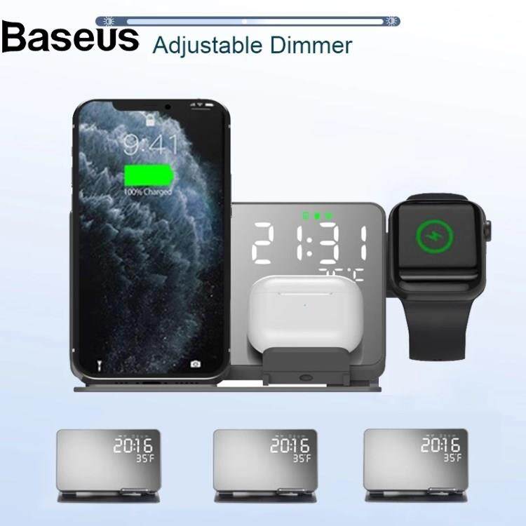Wireless Charger 4-in-1 LED Digital Temperature Display Alarm Clock 15W Wireless Charger Qi Fast Charging Stand for iPhone Android iWatch AirPods