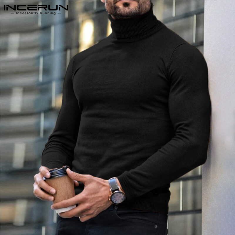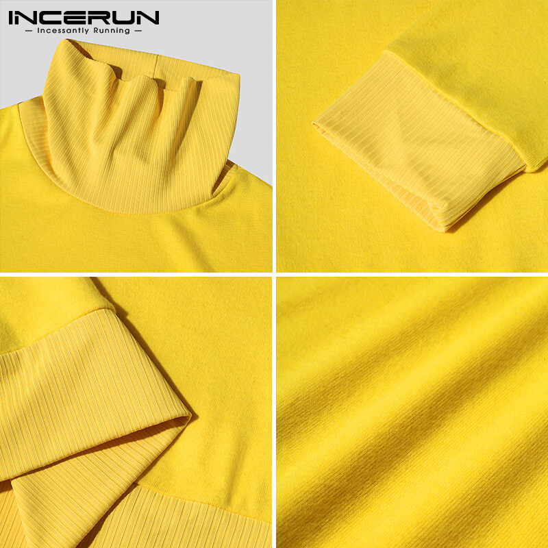 INCERUN Mens Long Sleeve Turtleneck Skinny T Shirts Casual Muscle Fitness Pullover Top (Clearance Sale)