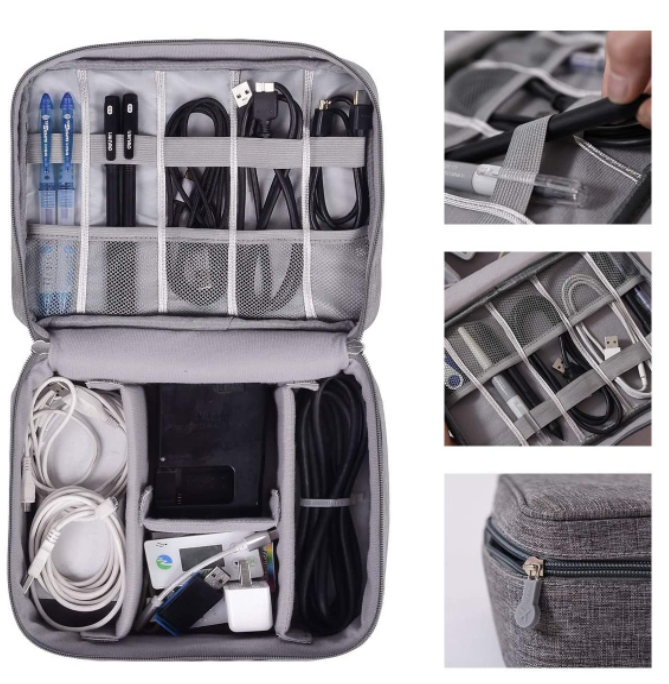 Lune Electronic Organizer Bag Power Bank Pouch 2 layers Large Capacity Storage Bag for Mobile power, Electronic Accessories USB Cable Charger Traveling Storage Bags