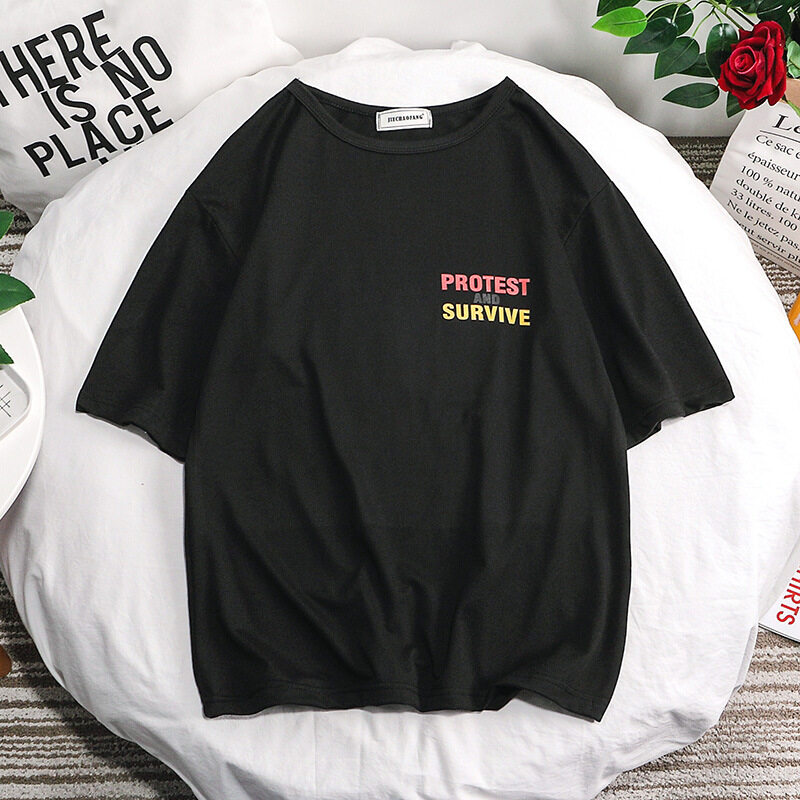 t shirt Men Large Size Korean Street Style Letter Graphic Print Oversize Casual Fashion Tops