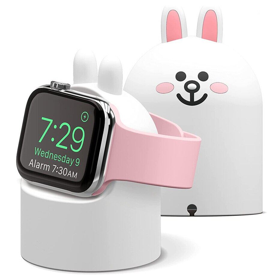 NOTE: Dock only, not included the charger! Cute Charger Stand Mount Silicone Duck Bear Dock Holder for Apple Watch Series 7 6 5 4 3 2 SE 44mm/42mm/40mm/38mm Charge Cable