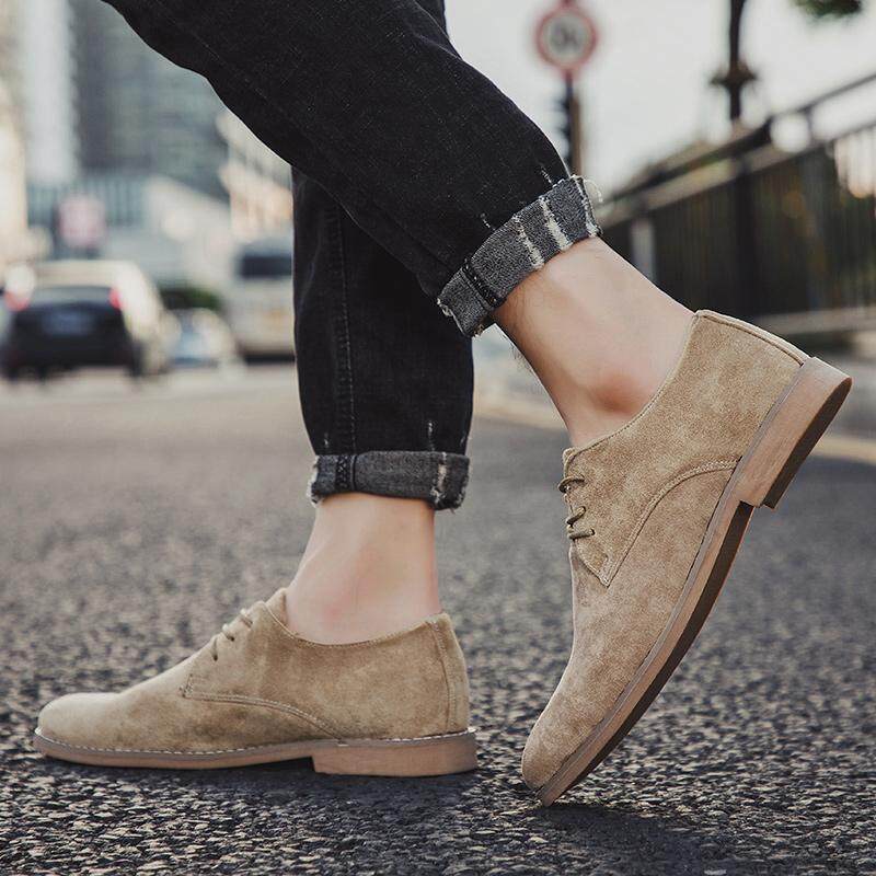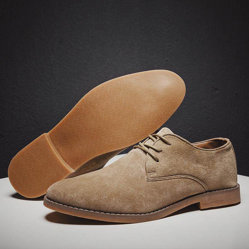 Vikey Plus Size Men Leather Shoes Suede Work Shoe Safety British Style Oxford Fashion Footwear (Black,Khaki,Browm)