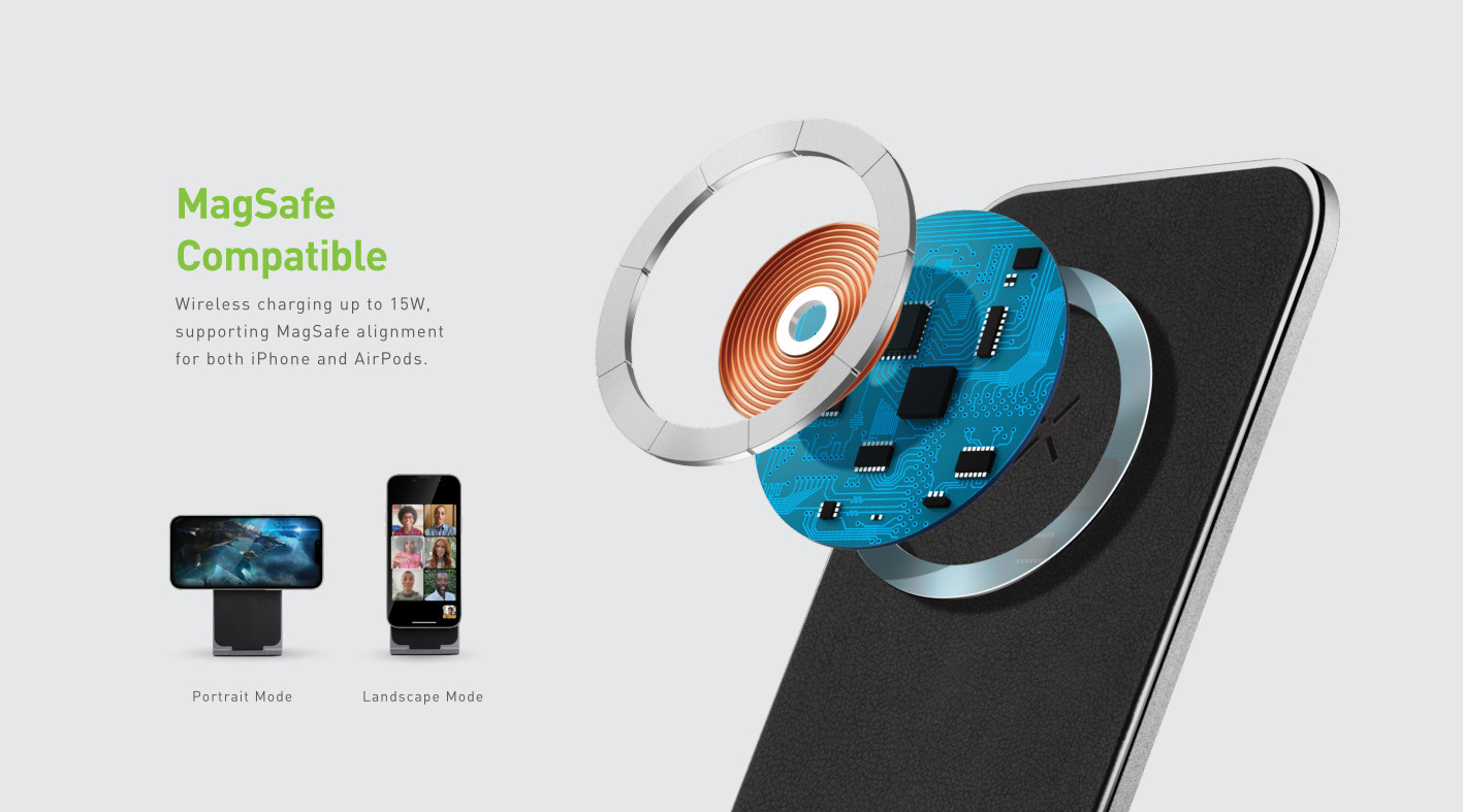 Energea MagDuo Air 2-in-1 Foldable MagSafe Wireless Charging Stand