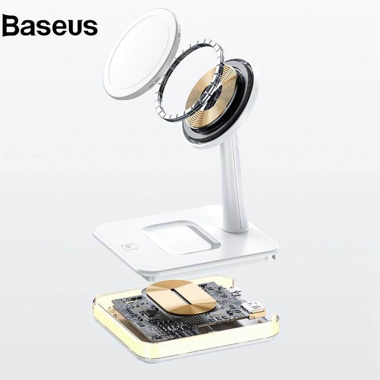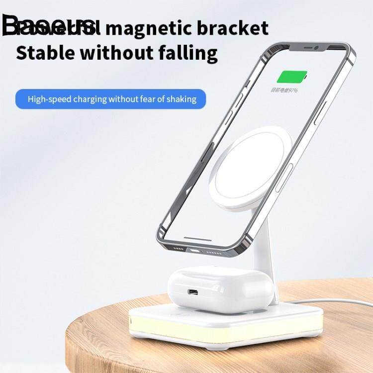Baseus JJT-992 3 in 1 Magnetic Wireless Charger with USB Output for iPhone / AirPods LED Light Charging Base