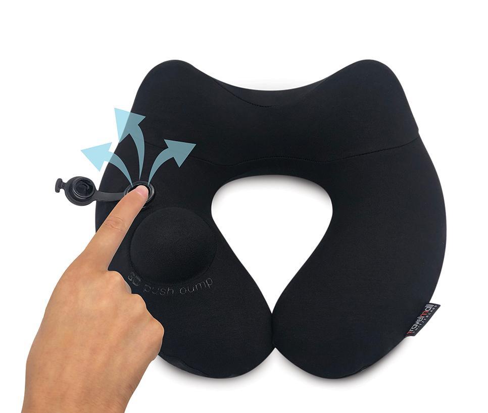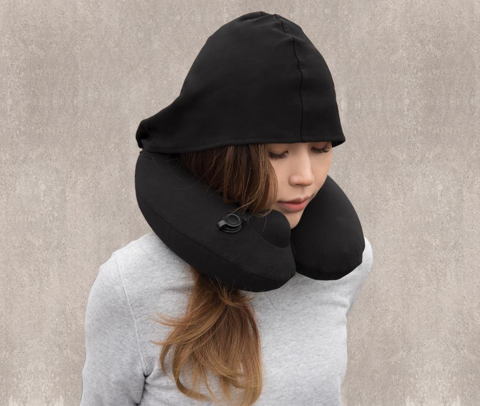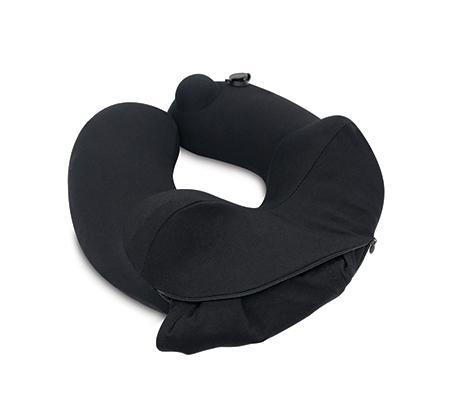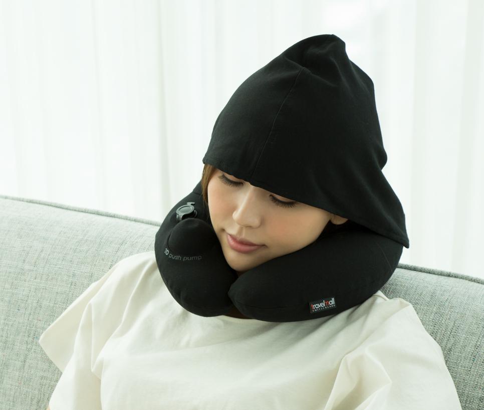Travelmall 3D Inflatable Neck Pillow with Patented Pump and Hood (Black)