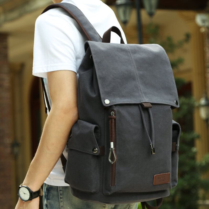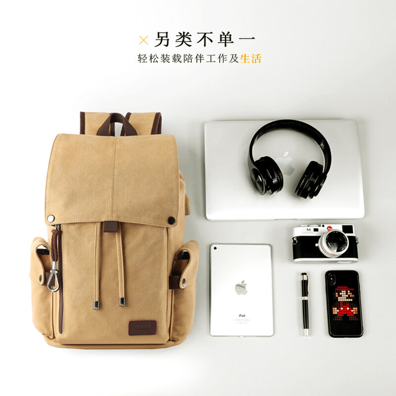 Korean Style Retro Canvas Men's Bag Casual Backpack Men's Travel Backpack Trendy Middle School Student Schoolbag Computer Bag Men