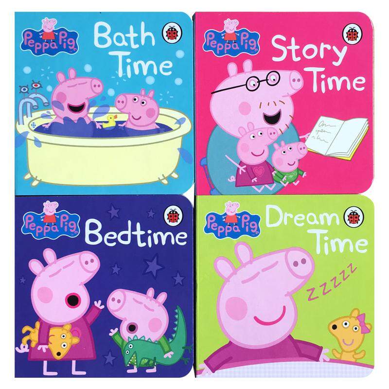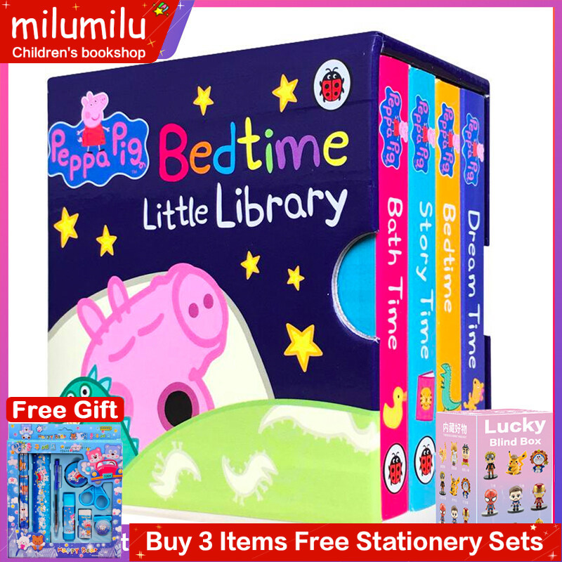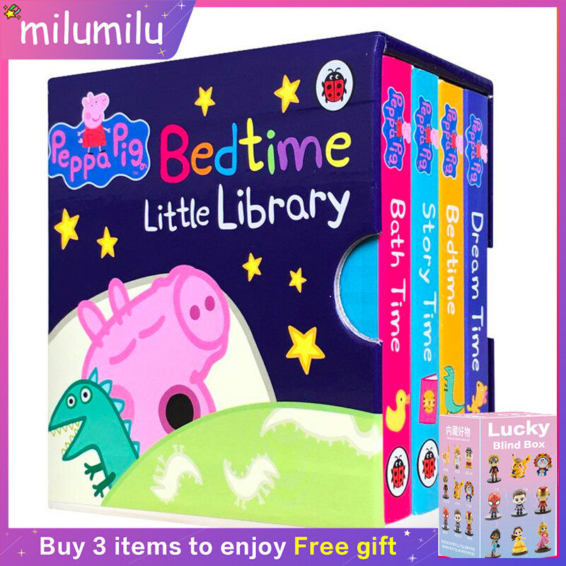 milumilu 4Pcs Original Children Popular Books Peppa Pig Bedtime Little Library Board book Colouring English Activity Story Book for Kids