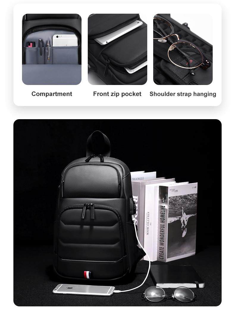 P&D Men Crossbody Bag New Anti-thief Men Chest Bag Waterproof Shoulder Bags USB Charging Short Trip For Male Travel Pack