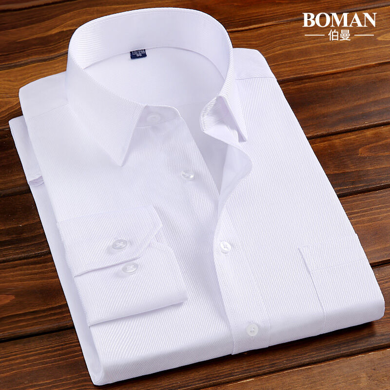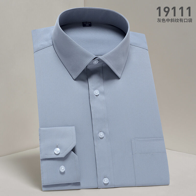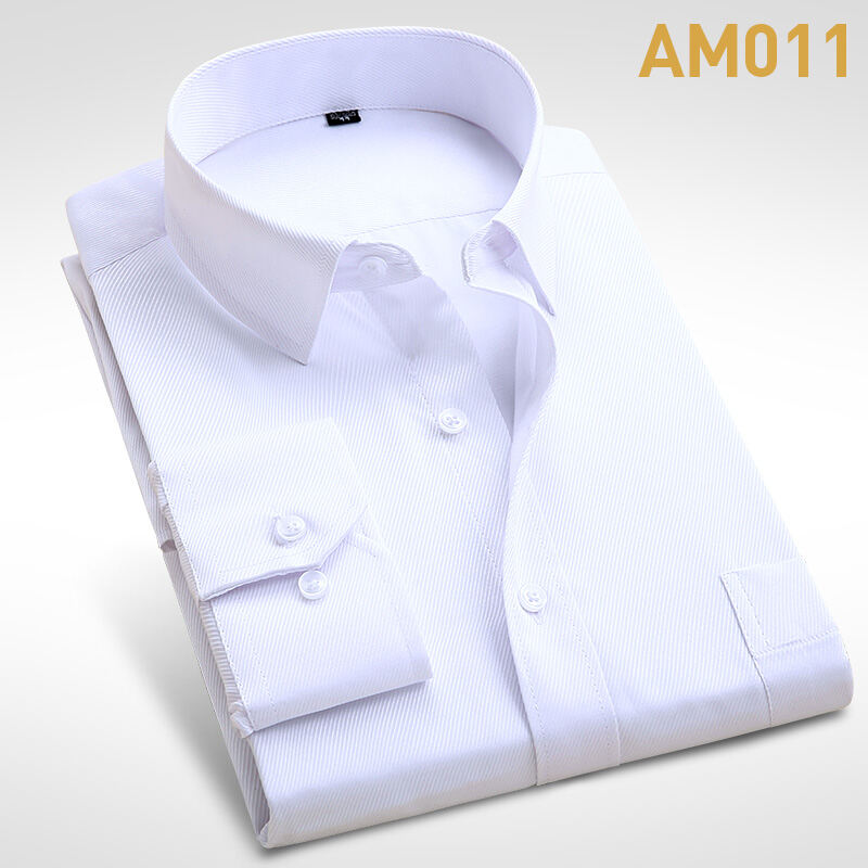 Spring Long-Sleeved Shirt Men's Youth Business Professional Workwear Solid Color White Shirt Slim-Fit Fleece-Lined Warm Formal Wear Inch